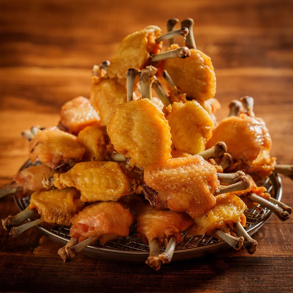 秘伝タレにたっぷりと漬け込み研究を重ねた独自のスパイスで味付けした手羽先は中毒性抜群の名物!